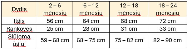 Prašome dydį rinktis ne pagal amžių, o pagal išmatavimus.